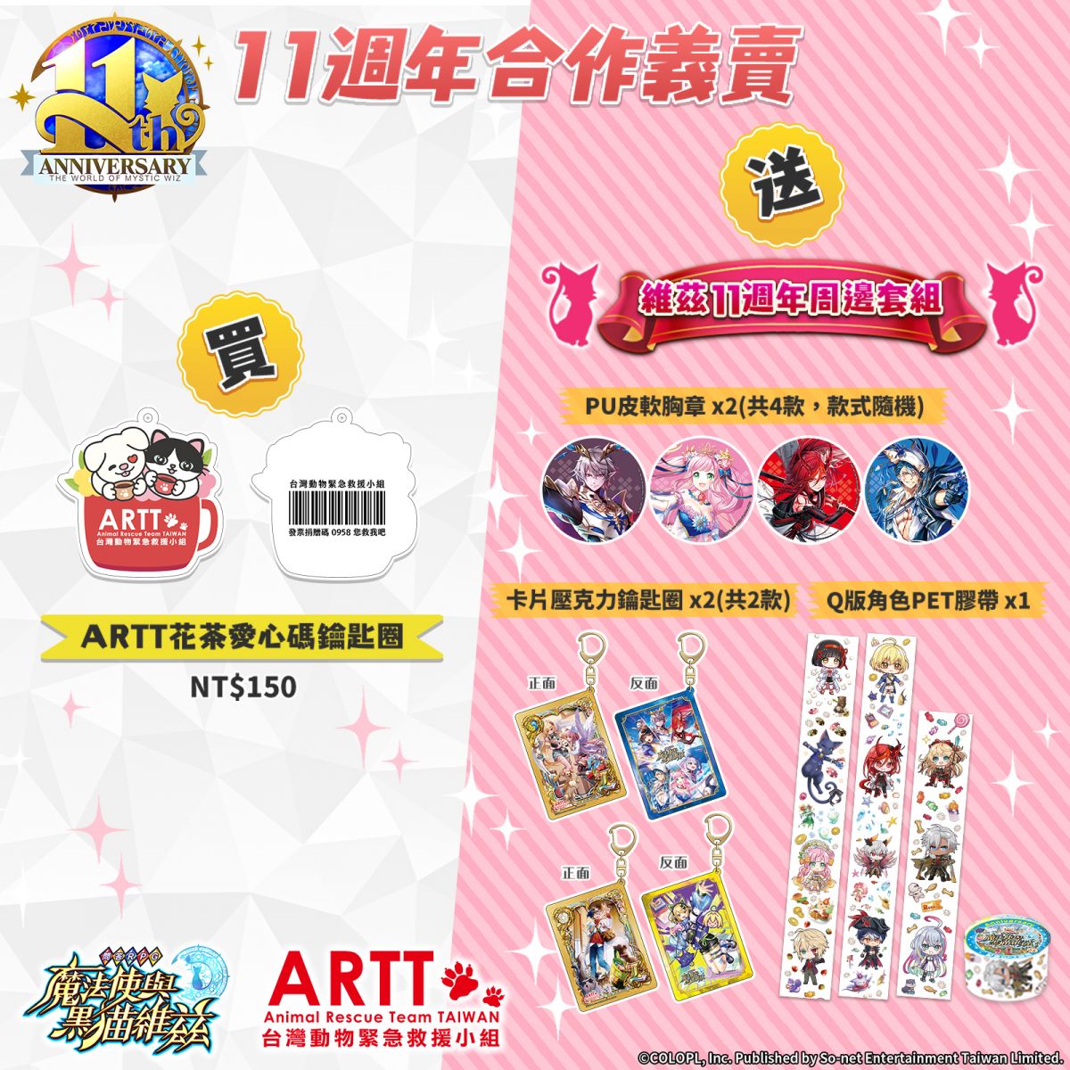 3. 「維茲11週年套組」一組內含:Q版角色PET膠帶x1、【暖心救援】卡片壓克力鑰匙圈x2、PU皮軟胸章x2,其中「PU皮軟胸章」款式為隨機發送,恕無法指定款式。